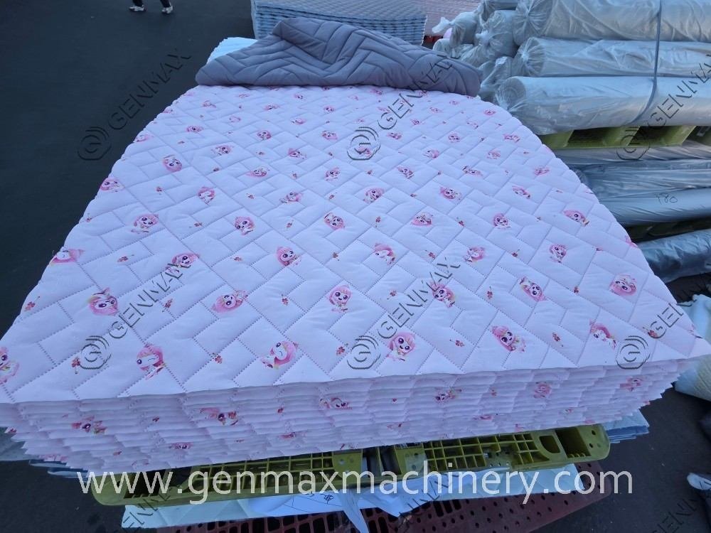 Applications include bedspreads, comforters, and garment components. The system processes pillowcases, decorative textiles, and bed sheets. Upholstery and outdoor textile applications are possible.