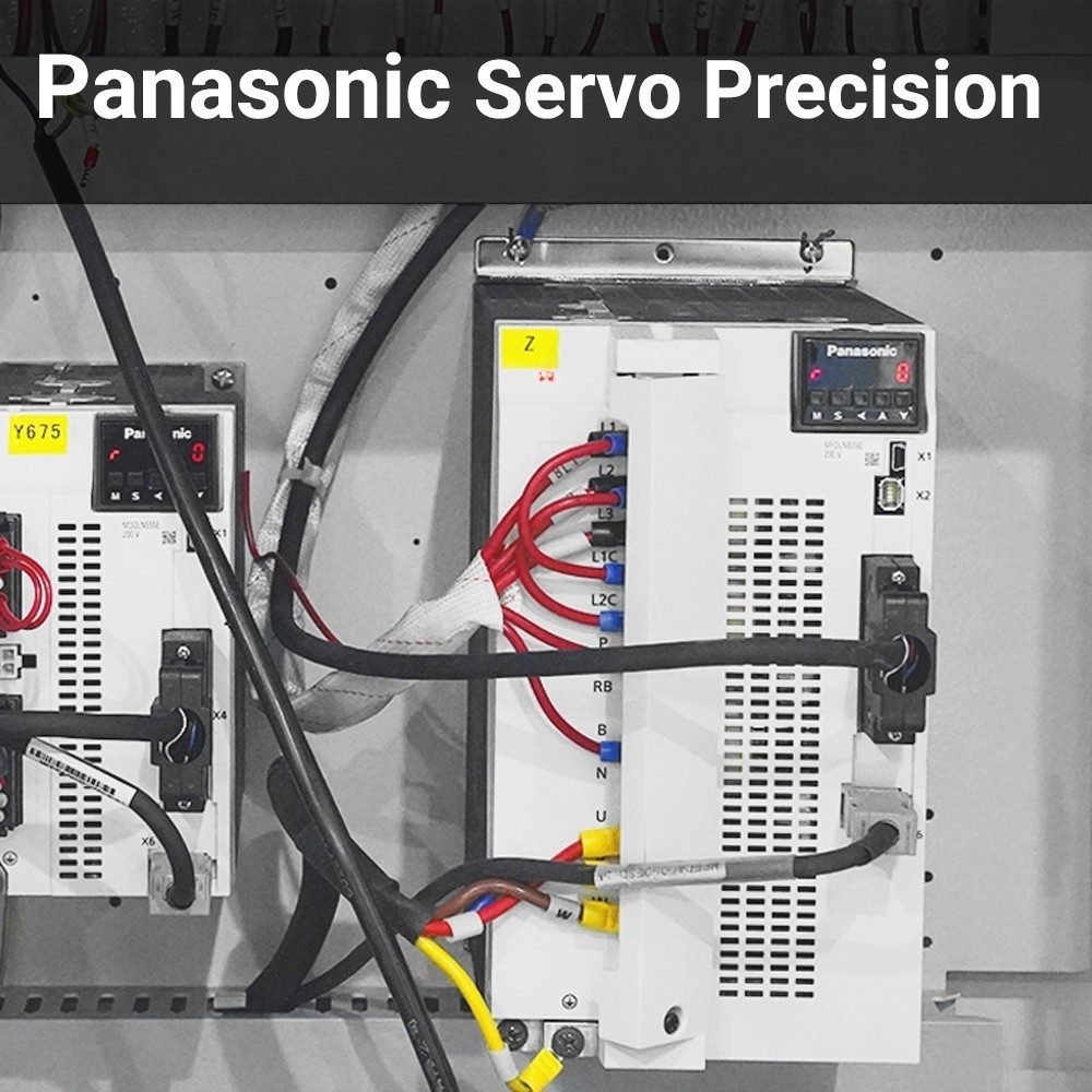 All machine uses servo-driven technology with a 6kW Panasonic servo motor for precise control.