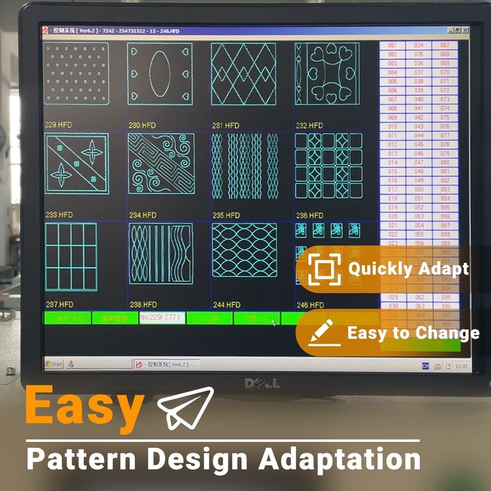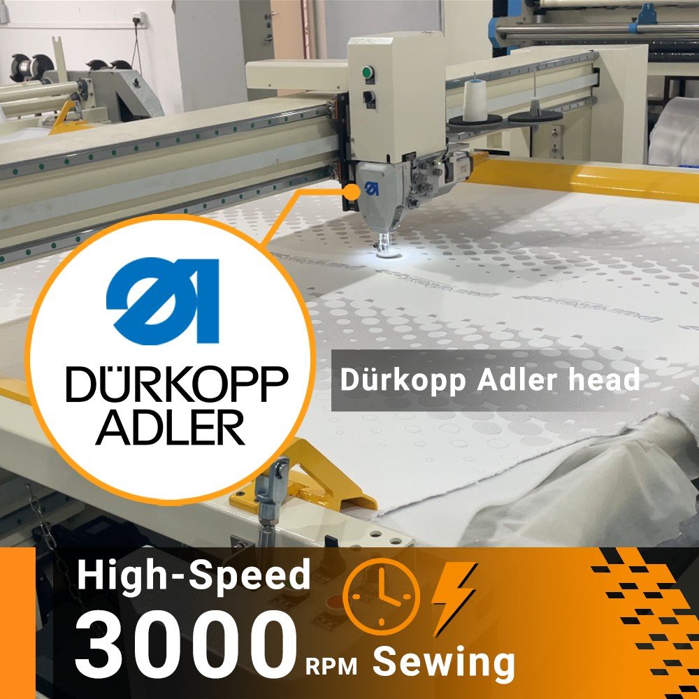 With the ability of quilting very different products, DZ5 offers perfect quilting quality for all the products from very thin garment products to thick materials for mattress industry with multiple layers including foam, visco, memory foam, latex, polyester fiber, non woven, jacquard fabric, knitted fabric, leather and down fill.