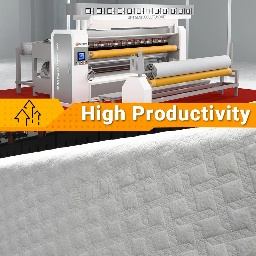 UM4 Ultrasonic Quilting Machine produces firmly bonded, tear-resistant products. Finished items are ready for immediate use. It’s perfect for home textiles, mattresses, bedding, apparel, electric blankets, and automotive interiors. Each purchase includes complete installation and training. GENMAX experienced engineers provide full support. UM4 operates reliably worldwide.