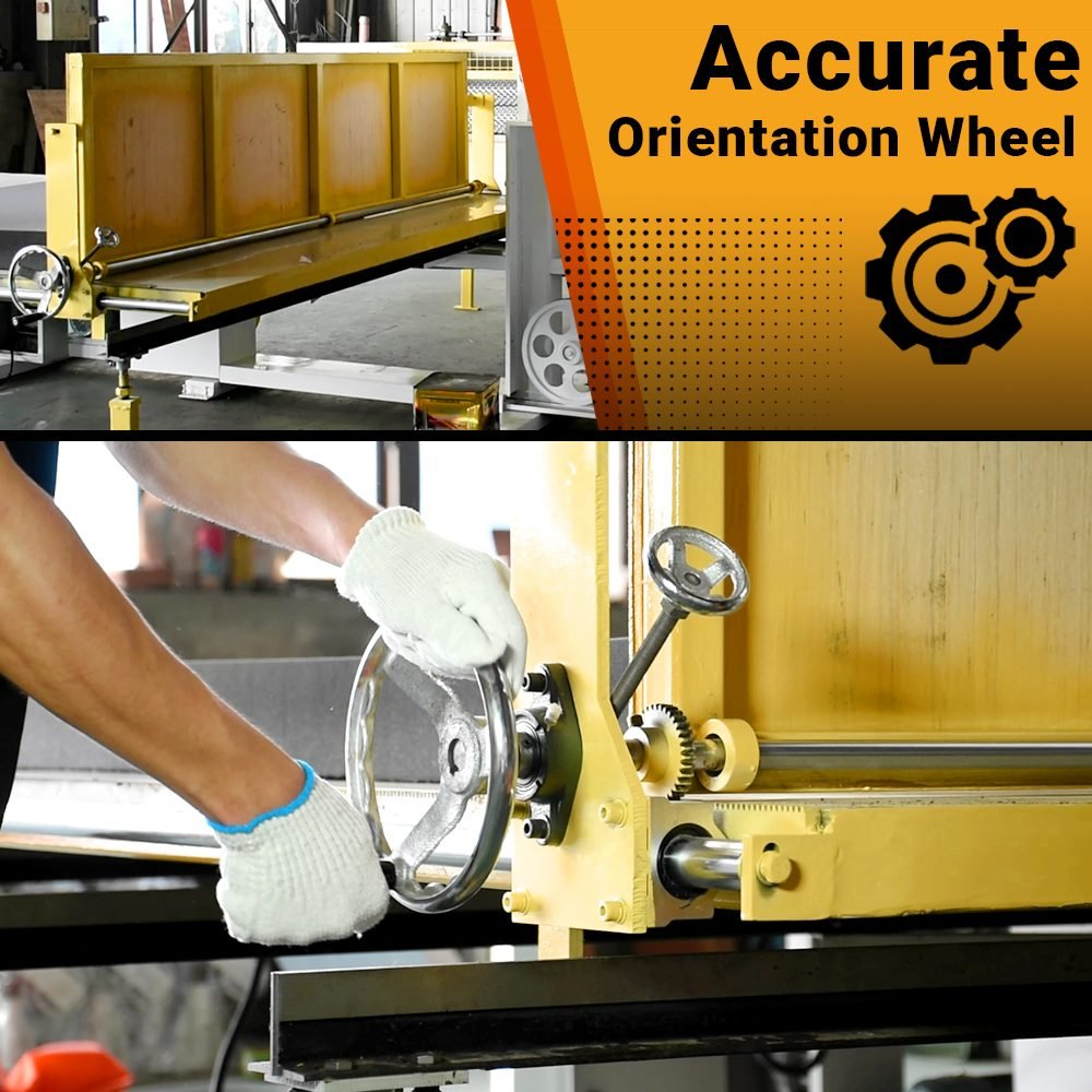 LQ Vertical Foam Cutting Machine slices and trims foam blocks while cutting sheets with rectangular configurations. Features advanced linear guide technology with grinding dust extraction and accurate orientation hand wheel for precision block trimming and sheet cutting operations.